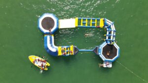 Vela ligera, kayak, Surf, BodyBoard, Paddle Surf XXL y un parque acuático flotante con obstáculos.